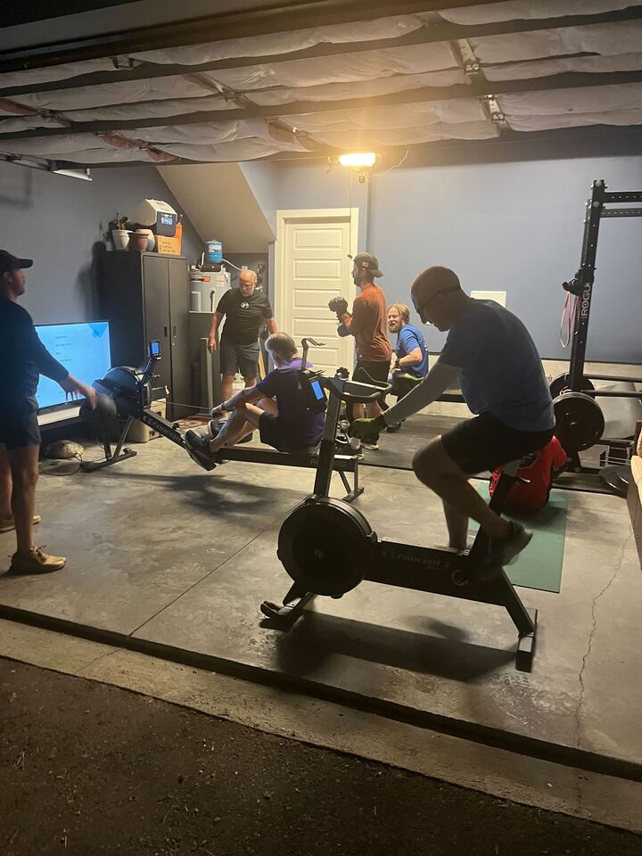 Mosey to a wall of garages. Pick a garage to workout in. The wrong garages were chosen twice and burpee penalties were inflicted. Once we found the correct garage we started our jam session: